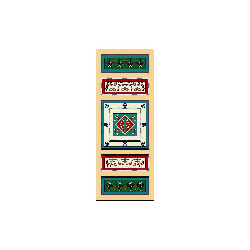 نخ و نقشه فرش درشت باف (گبه) طرح کد 6 با 5 رنگ به ابعاد 487 رج در 188 گره (رجشمار 20 الی 25) و سایز 170 در 65 سانتی متر تهیه شده از از پشم درجه یک بصورت گلوله شده و همراه با نقشه کامپیوتری و صوتی