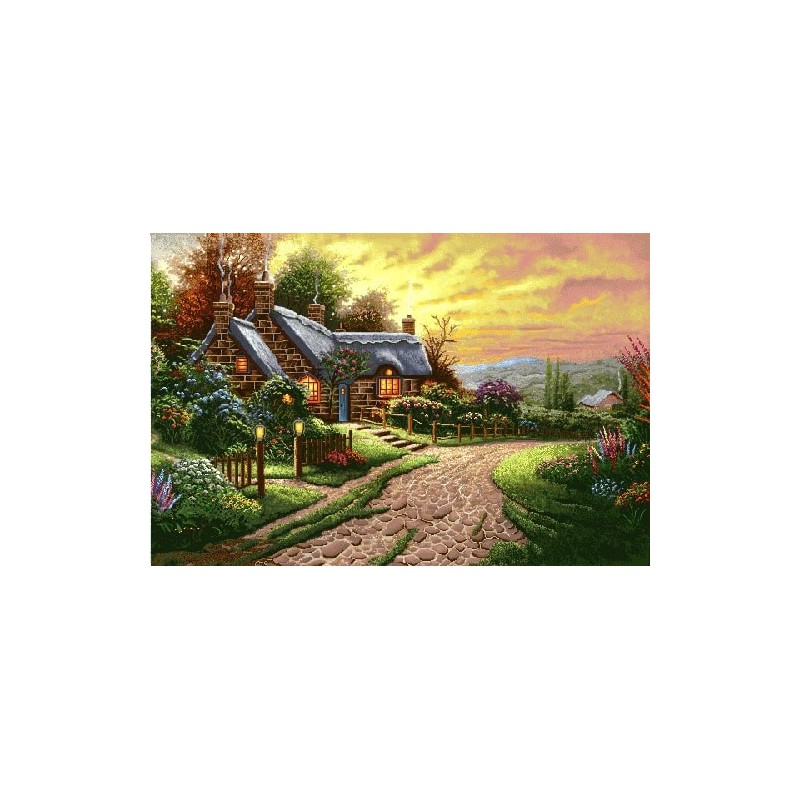 نخ و نقشه تابلوفرش دستباف طرح کلبه توماس با 109 رنگ و 17 رنگ ابریشم به ابعاد 333 رج در 500 گره (رجشمار 46) و سایز 50 در 76 سانتی متر تهیه شده از با کیفیت ترین نخ های مرینوس و ابریشم. بصورت گلوله شده و همراه با نقشه کامپیوتری و صوتی